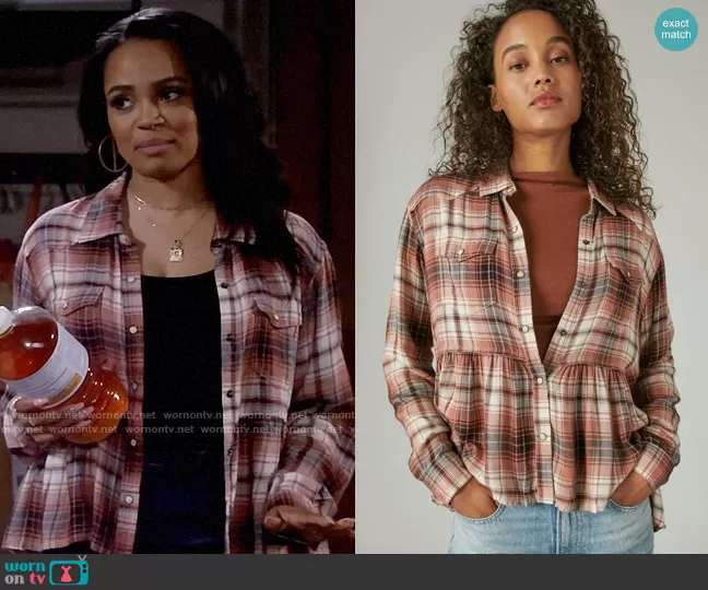 Randi (played by Kyla Pratt) on Call Me Kat on Fox was spotted wearing this plaid shirt on Call Me Kat on episode 'Call Me Lady Avenger' (3x17) in Mar 2023. Randi's Shirt is the Plaid Western Babydoll Shirt by Lucky Brand.