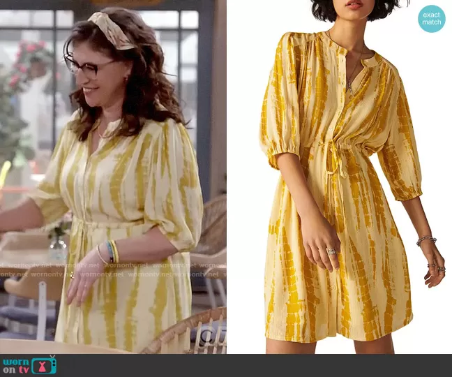 Kat Silver (played by Mayim Bialik) on Call Me Kat on Fox was spotted wearing this yellow tie dye dress on Call Me Kat on episode 'Call Me Lady Avenger' (3x17) in Mar 2023. Kat's Dress is the Kenya Tie Dye Shirt Dress by ba&sh.