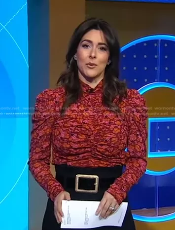 Erielle Reshef on Good Morning America on ABC was spotted wearing this red floral ruched top on Good Morning America on Mar 09 2023's episode. Erielle's Top is the Kim Top by Diane von Furstenberg.