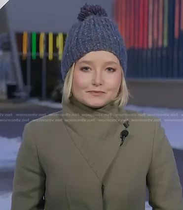 on Today on NBC was spotted wearing this khaki wrap coat on Today on Mar 10 2023's episode. 's Coat is the The Connor Coat in H. Deep Taupe by Babaton.