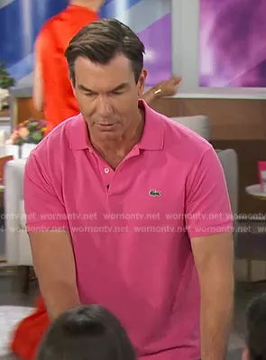 Jerry O'Connell on The Talk on CBS was spotted wearing this pink polo shirt on The Talk on Mar 10 2023's episode. Jerry's Shirt is the Original Polo Shirt by Lacoste.
