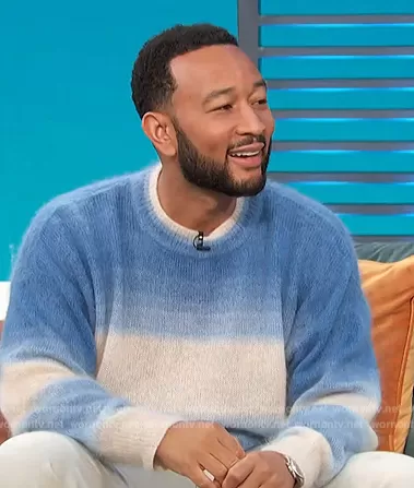 on Access Hollywood on NBC was spotted wearing this John Legends blue ombre stripe sweater on Access Hollywood on Mar 10 2023's episode. 's Sweater is the Drussellh Ombre Stripe Sweater by Isabel Marant.