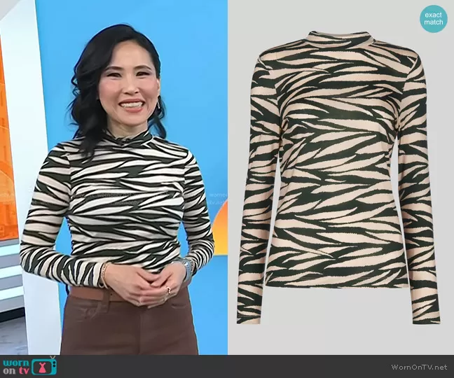Vicky Nguyen on Today on NBC was spotted wearing this animal print top on Today on Mar 06 2025's episode. Vicky's Top is the Tiger Stripe Essential Top by Whistles.