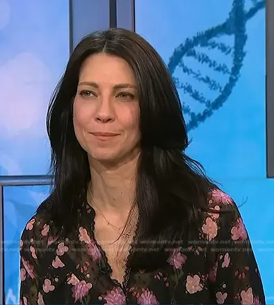on NBC News Daily on NBC was spotted wearing this black floral blouse on NBC News Daily on Jun 26 2023's episode. 's Top is the Floral Blouse by Anna Kay.
