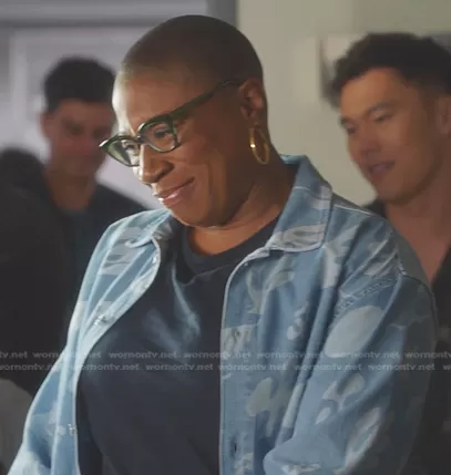 Henrietta Wilson (played by Aisha Hinds) on 9-1-1 on Fox was spotted wearing this blue printed denim shirt on 9-1-1 on episode 'In Another Life' (6x11) in Mar 2023. Hen's Shirt is the Denim Summer-Print Sport Shirt by Frame.