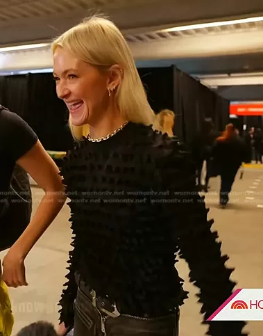 on Today on NBC was spotted wearing this black spike textured top on Today on Mar 14 2023's episode. 's Sweater is the Spike Textured Jumper by Versace.