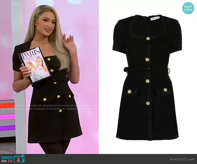 on Today on NBC was spotted wearing this black button embellished square neck dress on Today on Mar 14 2023's episode. 's Dress is the Belted Knitted Minidress by Self Portrait.