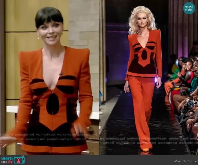 on Live with Kelly and Mark on Disney ABC Home Entertainment was spotted wearing this brown contrast blazer on Live with Kelly and Ryan on Mar 14 2023's episode. 's Blazer is the 2022 Fall Winter Collection by Sergio Hudson.