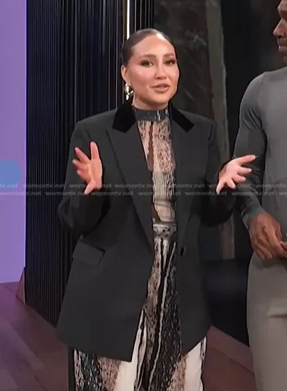 Adrienne Houghton on E! News on E! was spotted wearing this Adrienne’s black blazer on E! News on Mar 09 2023's episode. Adrienne's Jacket is the Hella Tailored Jacket by Sandro.