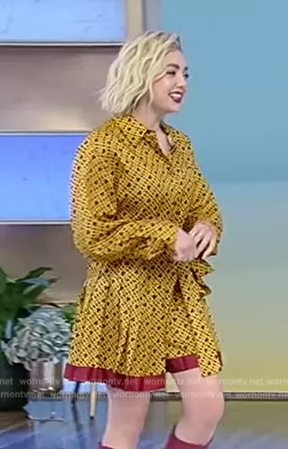 on Tamron Hall Show on ABC was spotted wearing this yellow printed tie waist dress on Tamron Hall Show on Mar 16 2023's episode. 's Dress is the Printed Dress by Tommy Hilfiger Collection.