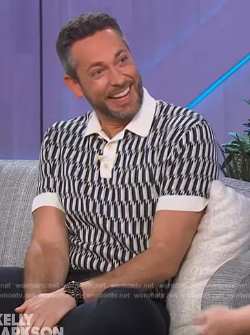 on The Kelly Clarkson Show on NBC was spotted wearing this bolt print polo on The Kelly Clarkson Show on Mar 16 2023's episode. 's Shirt is the Erice Knit Polo We Are Bound.