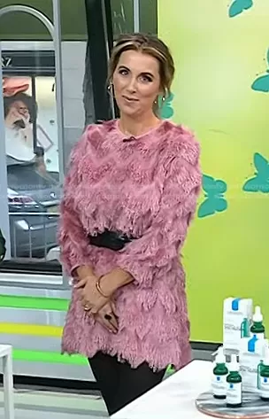 on Today on NBC was spotted wearing this pink fringed mini dress on Today on Mar 17 2023's episode. 's Dress is the Fringed Chevron Dress in Rose by Hutch.