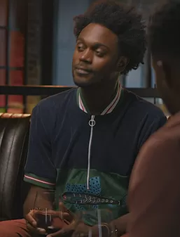 Noah Koles (played by Echo Kellum) on Grand Crew on NBC was spotted wearing this fish print polo on Grand Crew on episode 'Pilot' (1x01) in Dec 2021. Noah's Shirt is the Tour de Fish Cabana Polo by Tombolo.