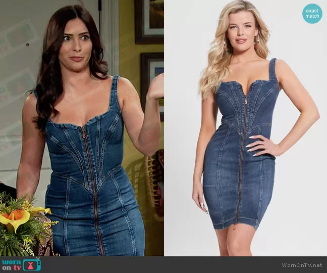 Gabi Hernandez (played by Camila Banus) on Days of our Lives on Peacock was spotted wearing this zip front denim dress on Days of our Lives on Mar 21 2023's episode. Gabi (old)'s Dress is the Eco Lilamor Denim Dress by Guess.