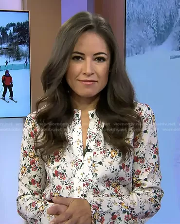 Kaylee Hartung on Today on NBC was spotted wearing this white floral blouse on Today on Mar 21 2023's episode. Kaylee's Top is the V Neck Floral Print Top by Derek Lam.