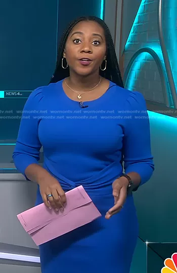 Kay Angrum on NBC News Daily on NBC was spotted wearing this blue twist-waist dress on NBC News Daily on Apr 04 2024's episode. Kay's Dress is the Twist-front Sheath Dress Blue Destiny by New York & Company.