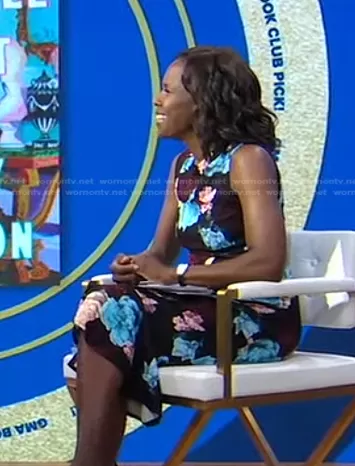 Deborah Roberts on Good Morning America on ABC was spotted wearing this black floral sleeveless dress on Good Morning America on Nov 15 2023's episode. Deborah's Dress is the Grazia Dress by Erdem.