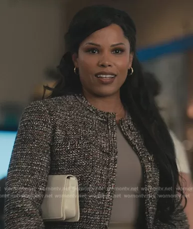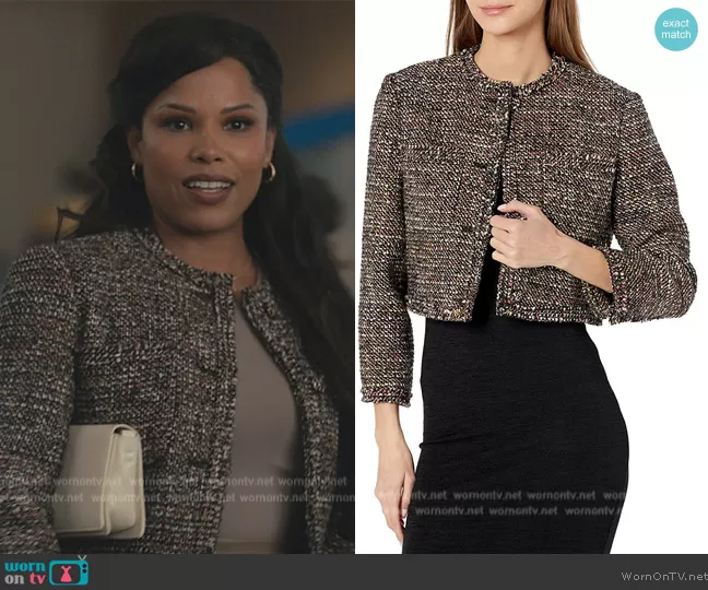 (played by Diandra Lyle) on Bel-Air on Peacock was spotted wearing this tweed jacket on Bel-Air on episode 'Excellence Is Everywhere' (2x05) in Mar 2023. 's Blazer is the Short Cropped Tweed Jacket by Theory.