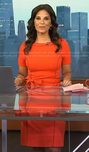 Darlene Rodriguez on Today on NBC was spotted wearing this red tie waist dress with black stitching on Today on Mar 24 2023's episode. Darlene's Dress is the Ponte Shift Dress by Boden.