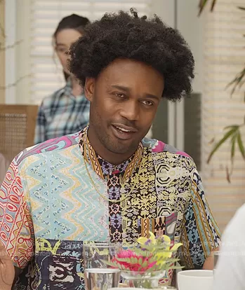 Noah Koles (played by Echo Kellum) on Grand Crew on NBC was spotted wearing this mixed print shirt on Grand Crew on episode 'Wine & Hip Hop' (1x05) in Jan 2022. Noah's Shirt is the Bon Patchwork Shirt by Rolla's.