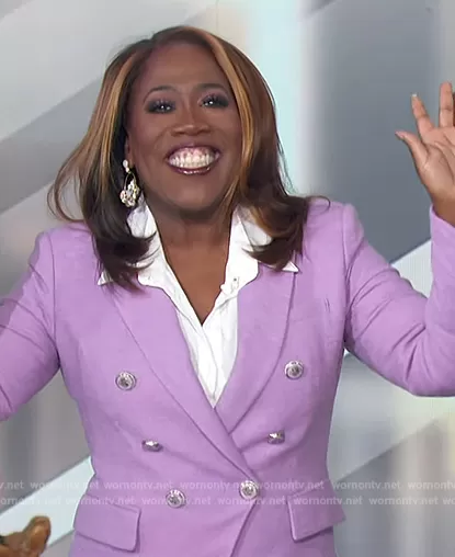 Sheryl Underwood on The Talk on CBS was spotted wearing this lavender blazer on The Talk on Mar 27 2023's episode. Sheryl's Jacket is the Miller Stretch Cotton Dickey Jacket by Veronica Beard.