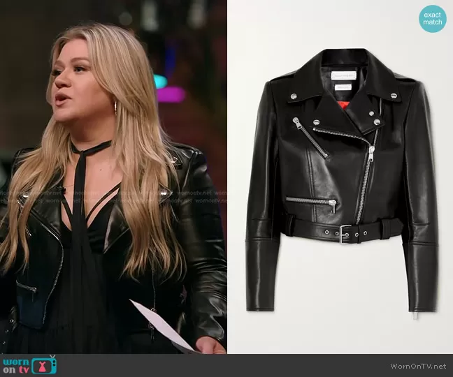Alexander McQueen Belted Leather Biker Jacket worn by Kelly Clarkson on The Voice