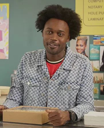 Noah Koles (played by Echo Kellum) on Grand Crew on NBC was spotted wearing this denim checkerboard jacket on Grand Crew on episode 'Wine & Pie' (1x06) in Jan 2022. Noah's Jacket is the Trucket Jacket by Ted Baker.