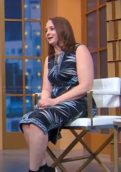 on Good Morning America on ABC was spotted wearing this black printed keyhole dress on Good Morning America on Mar 28 2023's episode. 's Dress is the Palm Print Sheath Dress by White House Black Market.