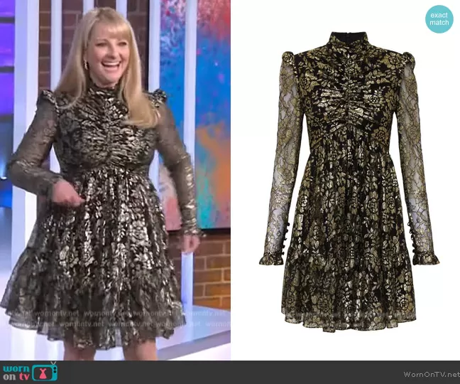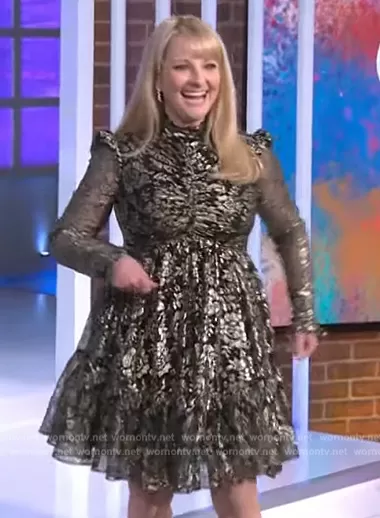 on The Kelly Clarkson Show on NBC was spotted wearing this black metallic floral dress on The Kelly Clarkson Show on Mar 28 2023's episode. 's Dress is the Clementine Long Sleeve Dress by Rebecca Vallance.