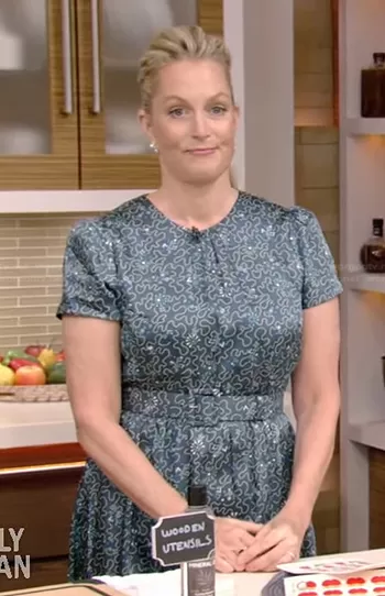 on Live with Kelly and Mark on Disney ABC Home Entertainment was spotted wearing this green printed belted dress on Live with Kelly and Ryan on Mar 28 2023's episode. 's Dress is the Nina Belted Printed-Twill Midi Dress by Cefinn.