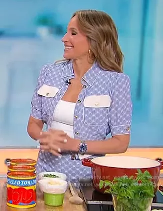on Sherri on FOX was spotted wearing this blue cropped jacket and skirt on Sherri on Mar 28 2023's episode. 's Top is the Printed Crop Top by Elisabetta Franchi . 's Skirt is the Logo Printed Flouce Skirt by Elisabetta Franchi.