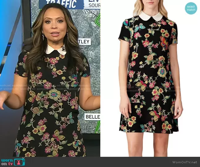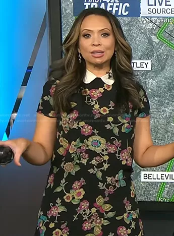 Adelle Caballero on Today on NBC was spotted wearing this black floral collared dress on Today on Mar 29 2023's episode. Adelle's Dress is the Abito St Flower Butterfly Dress by RED Valentino.