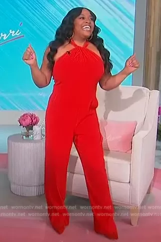 Sherri Shepherd on Sherri on FOX was spotted wearing this red halter neck jumpsuit on Sherri on Mar 29 2023's episode. Sherri's Jumpsuit is the Halter Neck Jumpsuit by Julia Jordan.