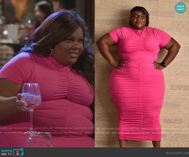 Nicky (played by Nicole Byer) on Grand Crew on NBC was spotted wearing this pink ruched front dress on Grand Crew on episode 'Wine & Labels' (2x02) in Mar 2023. Nicky's Dress is the On Time Set by Lindy G Boutique.