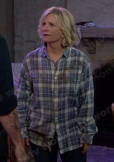 Kayla Brady (played by Mary Beth Evans) on Days of our Lives on Peacock was spotted wearing this blue plaid shirt on Days of our Lives on Apr 24 2023's episode. Kayla's Top is the Wyatt Plaid Button-Up Shirt by Rails.