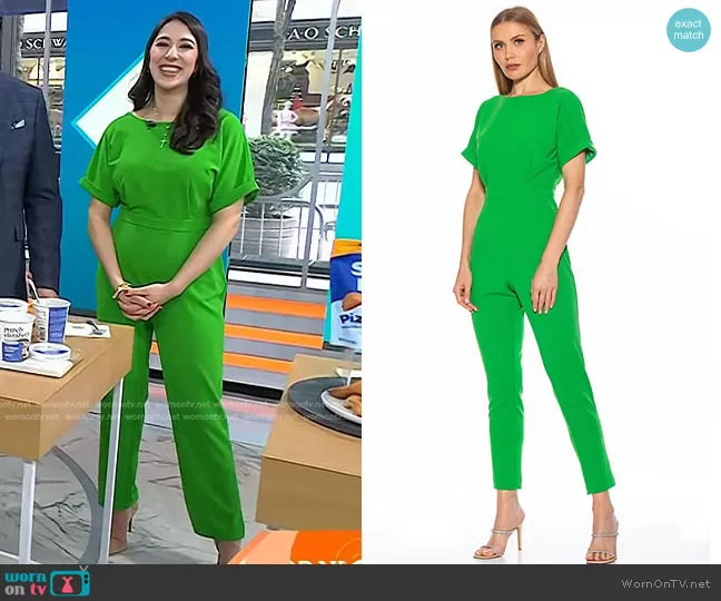 on Today on NBC was spotted wearing this green short sleeve jumpsuit on Today on Mar 31 2023's episode. 's Jumpsuit is the Sadie Boatneck Tapered Jumpsuit by Alexia Admor.