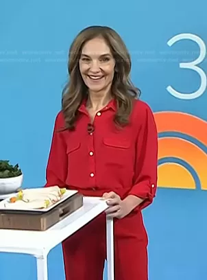 on Today on NBC was spotted wearing this red roll tab sleeve shirt on Today on Mar 31 2023's episode. 's Top is the Utility Blouse by Loft.