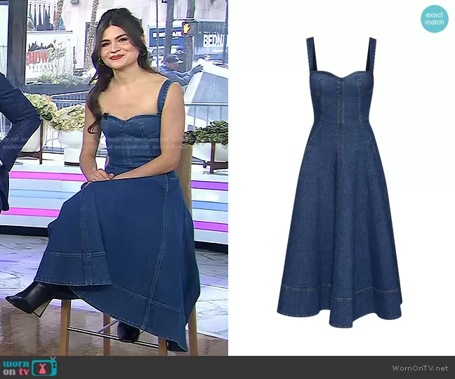 on Today on NBC was spotted wearing this denim midi dress on Today on Mar 31 2023's episode. 's Dress is the Sweetheart Neck Denim Dress by Oscar de la Renta.