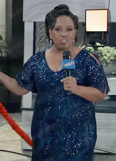 Sydney Val Jean is making quite the impression at the 2023 Nurses Ball on General Hospital. As a red carpet correspondent, she is welcoming guests with open arms and checking out their latest fashion choices. Sydney is also eager to get the latest scoop on all the gossip from the hospital staff and guests attending the event. While she is busy reporting, Sydney looks stunning herself in a navy Sequin Embellished Split-Sleeve Gown by Alex Evenings. The gown is beautifully designed with intricate sequin detailing and split sleeves, which perfectly complement her style. Anyone who is a fan of Sydney's fashion sense can find this exquisite gown available for purchase at Macy's.