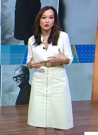 Eva Pilgrim on Good Morning America on ABC was spotted wearing this white zip front skirt on Good Morning America on Apr 03 2023's episode. Eva's Skirt is the Cord Skirt in Cream by Scanlan Theodore.