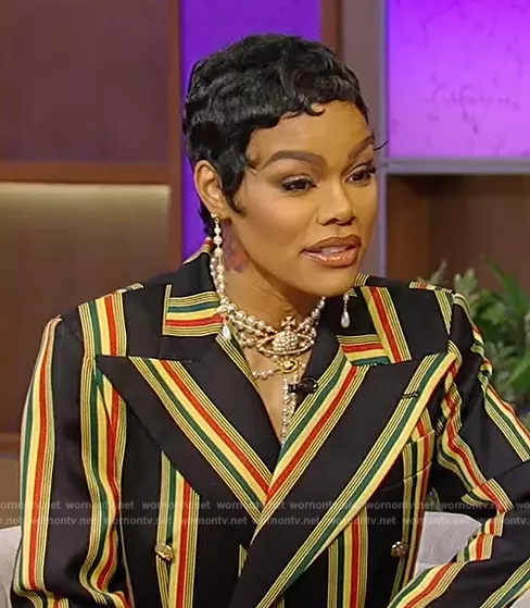 Vivienne Westwood Cropped double-breasted blazer worn by Teyana Taylor on Tamron Hall Show