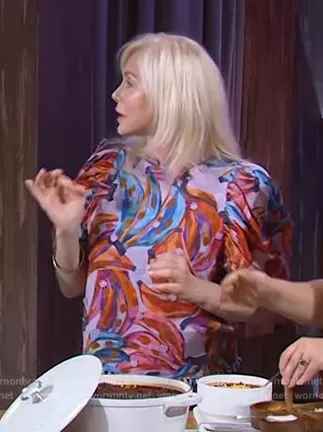 on The Kelly Clarkson Show on NBC was spotted wearing this banana print top on The Kelly Clarkson Show on Apr 05 2023's episode. 's Top is the Colored Bananas Puff Sleeve Cotton Blouse by Farm Rio.