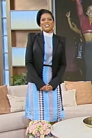 Tamron Hall on Tamron Hall Show on ABC was spotted wearing this blue printed belted dress on Tamron Hall Show on Apr 05 2023's episode. Tamron's Dress is the Chari Printed Skirt by Wales Bonner.