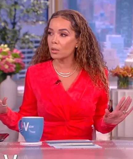 Sunny Hostin on The View on ABC was spotted wearing this red twisted front dress on The View on Apr 05 2023's episode. Sunny's Dress is the Havena Dress by Isabel Marant.