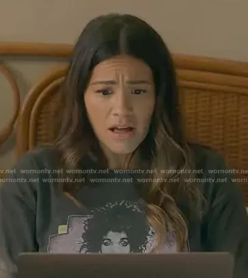 Nell Serrano (played by Gina Rodriguez) on Not Dead Yet on ABC was spotted wearing this Whitney Houston t-shirt on Not Dead Yet on episode 'Not Friends Yet' (1x08) in Apr 2023. Nell's Top is the Whitney Houston Moment Of Truth T-shirt by Daydreamer.