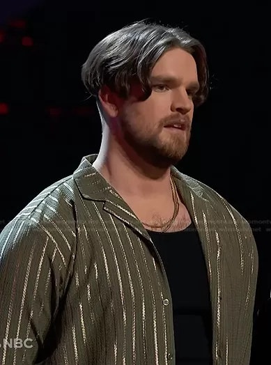on The Voice on NBC was spotted wearing this green striped shirt on The Voice on Apr 07 2023's episode. 's Shirt is the Long Sleeve Stripe Shirt by Boohoo.