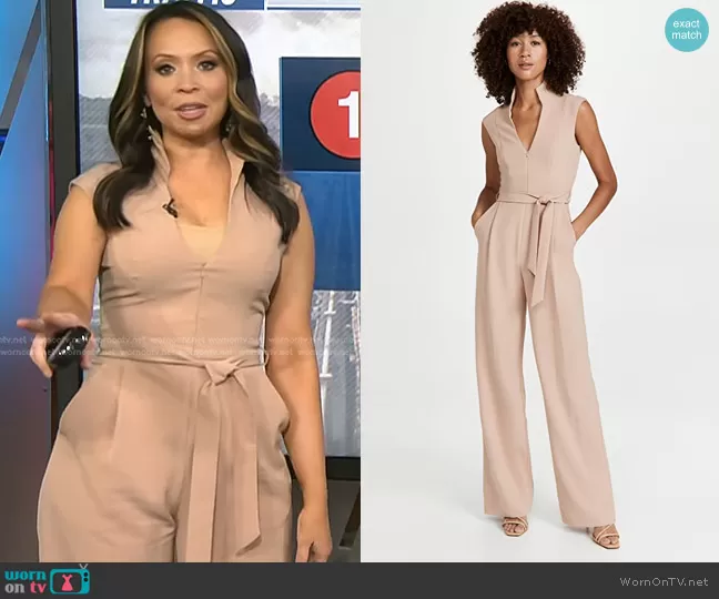 Adelle Caballero on Today on NBC was spotted wearing this beige tie waist jumpsuit on Today on Apr 06 2023's episode. Adelle's Jumpsuit is the Brittan Jumpsuit in Desert Sand by Black Halo.