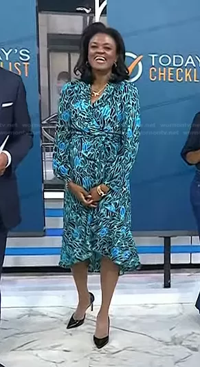 on Today on NBC was spotted wearing this turquoise floral wrap dress on Today on Apr 06 2023's episode. 's Dress is the Carla Wrap Dress by Diane von Furstenberg.