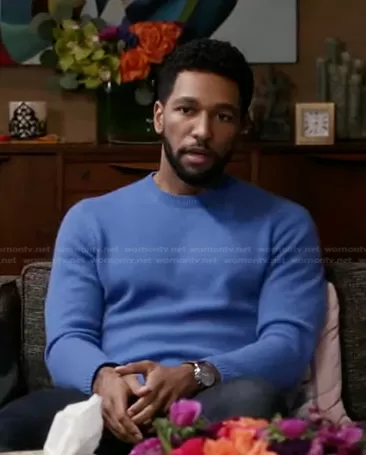 Dr. Winston Ndugu (played by Anthony Hill) on Greys Anatomy on ABC was spotted wearing this blue sweater on Greys Anatomy on episode 'Cowgirls Don't Cry' (19x13) in Apr 2023. 's Sweater is the Cashmere Long Sleeve Crew Neck Sweater by Vince.