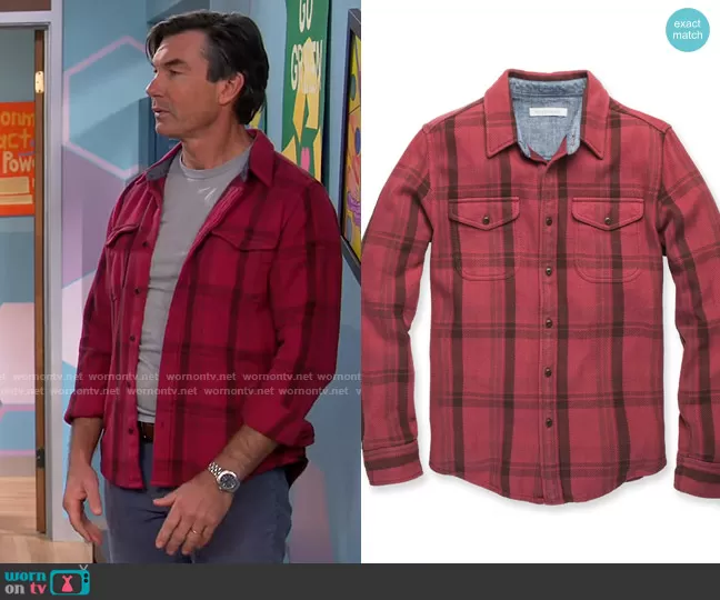 Jerry O'Connell (played by Jerry O'Connell) on The Neighborhood on CBS was spotted wearing this red plaid shirt on The Neighborhood on episode 'Welcome to the Milestone' (5x17) in Apr 2023. 's Shirt is the Blanket Shirt in Dusty Red Cusco Plaid by Outerknown.
